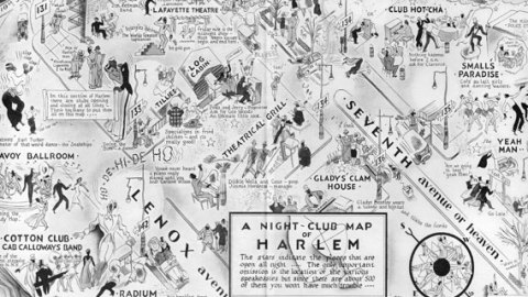 It’s the 1930s, and while elsewhere in the world evil people are poring over maps with plans for plunder and dreams of conquest, cartography is serving a more benign purpose in Harlem, New York City. This Night-Club Map of Harlem is a chart of the fun to be had in the cultural capital of black America, circa 1932.