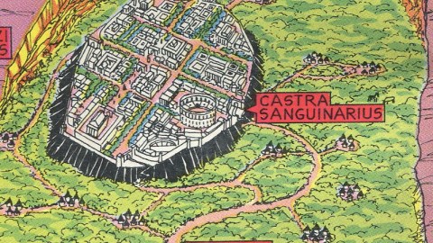 In Burroughs’ 12th Tarzan book, Tarzan and the Lost Empire (1928), the ape-man comes across a lost Roman province located in a secluded canyon on the African coast. This map is taken from the back of that book. It shows the canyon, and describes some features of the province in elementary Latin: