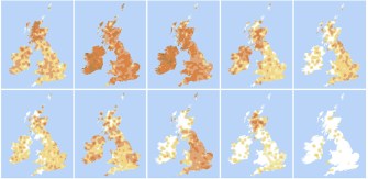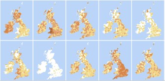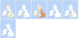 Take this series of 26 maps, each showing the density and distribution of British and Irish toponyms starting with each of the letters of the modern alphabet. Some observations: