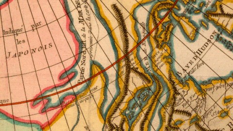 What a strange concoction this late-18th-century French map is. Centred on the northwestern part of America, it is an eclectic mix of geographic fact and fiction. Some continental contours are instantly recognisable, for instance the Kamchatka peninsula of Russia’s Far East, and Canada’s Baffin and Hudson Bays. But what is that thing in between, and what has it done to Alaska?