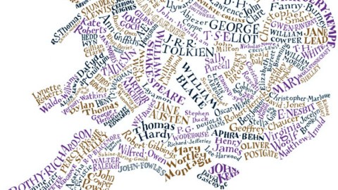 Or in this case, the poetry and prose of place. This literary map of the United Kingdom is composed of the names of 181 British writers, each positioned in parts of the country with which they are associated.