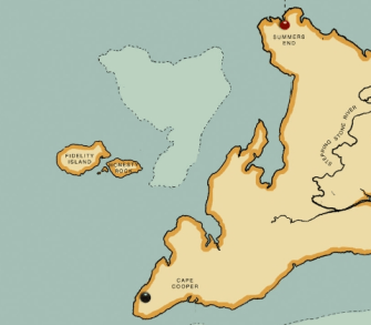 But that’s as precise as it gets. The map is completely fictional, and doesn’t include any reference to real places. And even though the story is set over a short, specific period in the summer of 1965, it seems to take place outside of time. Nothing of whatever was happening during those summer months [3] in America or the world intrudes upon the island’s edenic isolation.