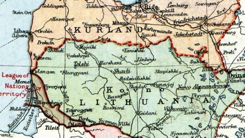 The map still shows Vilnius (Wilno in Polish, Vilna on the map) as Lithuania’s capital; although it was the spiritual centre of Lithuanian nationalism, Lithuanian was heavily minoritary, the majority being Polish. After a Polish invasion and a period of detachment as the Central Lithuanian Republic (1920-1922), Vilnius and the surrounding areas were annexed by Poland. Kaunas – on this map rendered as Kovno, slightly to the west of Vilnius – was thereafter proclaimed Lithuania’s ‘provisional capital’.