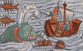 Interesting about the Carta Marina is that the map monsters have migrated away from the land. As the Age of Discovery unfolds, mainly via seafaring exploration, the horrors of the unknown are transposed to the high seas.