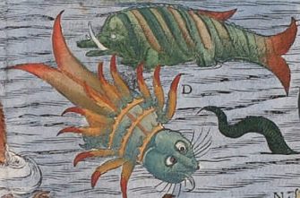 It’s a pleasing hypothesis. For to label a cartographic vacuum with the stuff of nightmares solves two problems at once. It explains why the fringes of contemporary knowledge didn’t match the outer limits of the entire world – monsters were keeping us out! And, by being equal parts fantastic and horrific, those monsters symbolise our fascination with the known unknowns[1] just out of our reach. What keeps us out is also what draws us in.