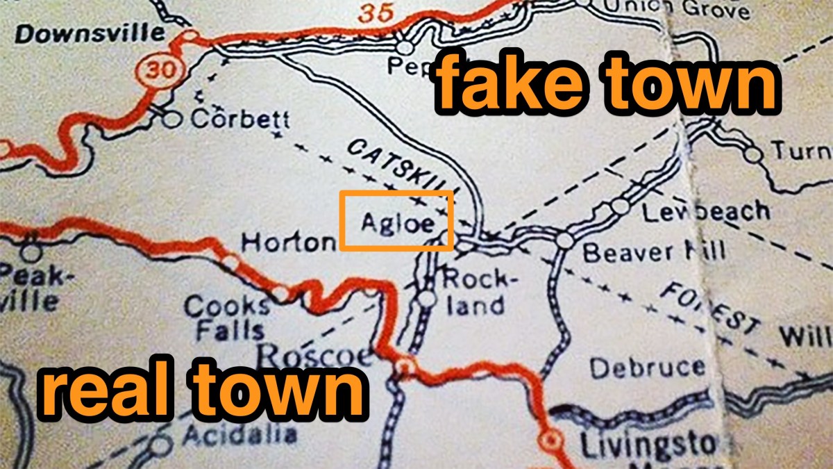 Of course, the mapmaker won’t invent busy thoroughfares or large towns. Not only would this be more easily discovered by the competition, it would also confuse the unsuspecting map-reader. Better to use tiny dead-end streets for these phony map entries, or small, out-of-the-way hamlets. Like Agloe.