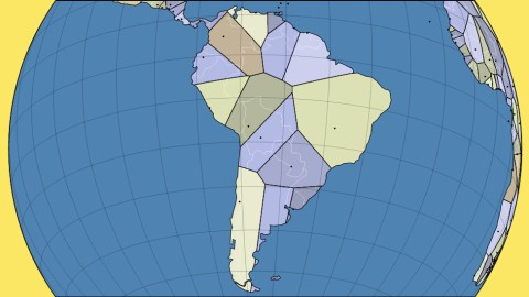 Planet Voronoi looks almost exactly like our own Earth. The continents are all in the same place. The number of countries hasn’t changed, nor has the location of their capitals. But the international borders are all wrong. Interestingly wrong.