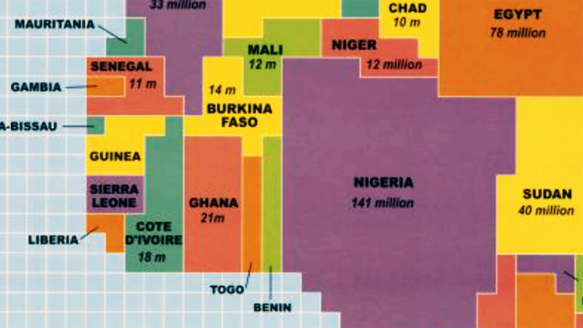 Even back in 2005, it was clear which country was Africa’s demographic superpower. Not Egypt, a respectable second with 78 million, but Nigeria, almost double that size at 141 million. Other big hitters: Ethiopia with 70 million and DR Congo with 60 million. South Africa came in only 5th, with 43 million. The continent’s biggest countries in area, Sudan (40 million) and Algeria (33 million), are only second-tier when it comes to population.