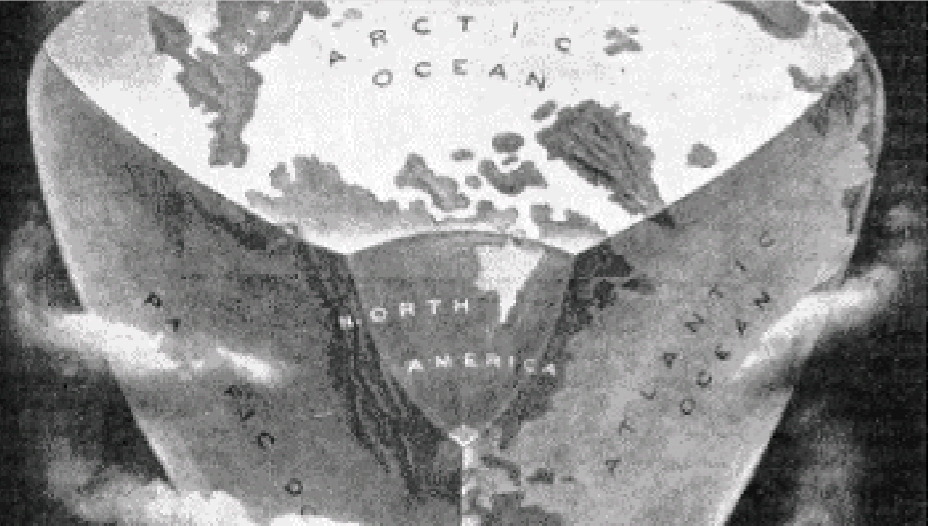 Notwithstanding the fact that celestial objects of a certain mass generally are spherical in shape, an article in My Magazine, dated May 1918 (and titled What the World May Come To: The School Maps As They May Be in Millions of Years to Come) predicts that the earth is spinning itself into a tetrahedron. The explanation, as one can imagine, is very dodgy. The accompanying picture of the globe is strange enough to be figured here.