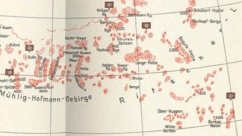 The revanchist mood that swept the Nazis into power in the early nineteen thirties also revived Germany’s by now totally outdated colonial ambitions. Those were turned to the last great area of the globe that was not yet colonized: Antarctica – big, cold and empty. At the beginning of 1939, a Nazi expedition explored a hitherto uncharted area of the Antarctic. By foot and plane, the Nazis surveyed an area between latitudes 69°10’ S and 76°30’ S and longitudes 11°30 W and 20°00’ E, totaling 600.000 sq. km. They called it Neuschwabenland, or New Swabia.