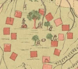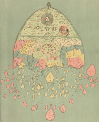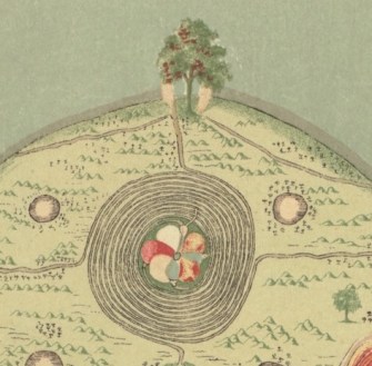 Where is that tree? Or what does it mean? We are left completely clueless, for the only information the map comes with is the rather succinct legend: A Burmese Map of the World, showing traces of Mediaeval European Map-making. This is a page from a book titled The Thirty-Seven Nats — A Phase of Spirit-Worship prevailing in Burma, by Sir Richard Carnac Temple, published in London in 1906 by W. Griggs, “chromo-lithographer to the King.”