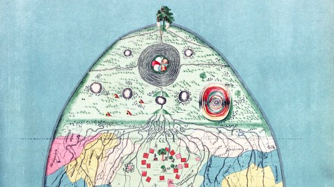Where is that tree? Or what does it mean? We are left completely clueless, for the only information the map comes with is the rather succinct legend: A Burmese Map of the World, showing traces of Mediaeval European Map-making. This is a page from a book titled The Thirty-Seven Nats — A Phase of Spirit-Worship prevailing in Burma, by Sir Richard Carnac Temple, published in London in 1906 by W. Griggs, “chromo-lithographer to the King.”