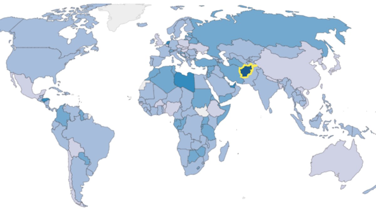 Afghanistan is the most depressed country on earth, Japan the least (no, not South Sudan – it’s playing its usual role as the biggest data hole on the world map – see also #843)
