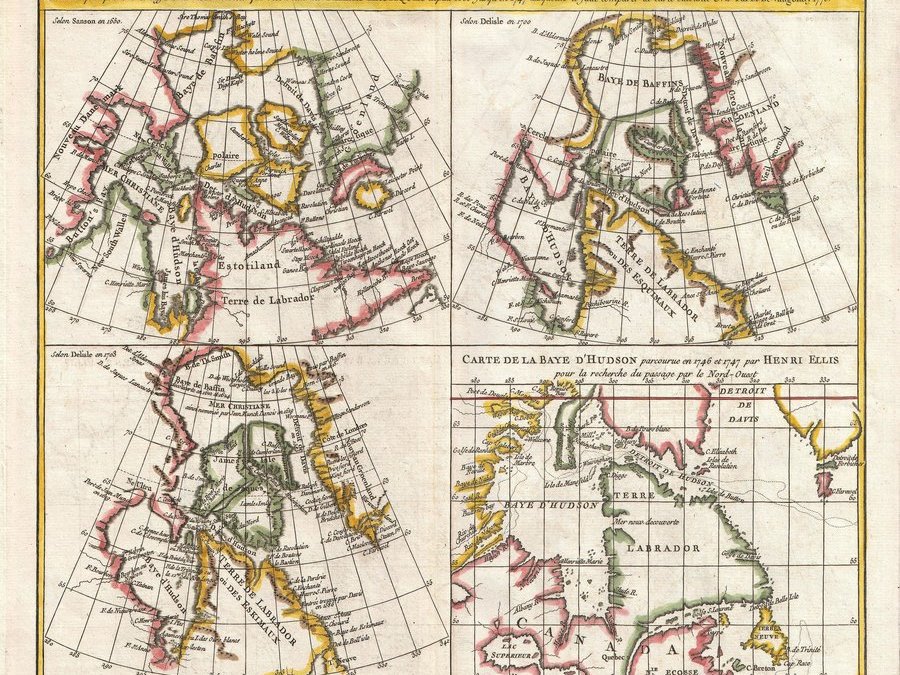 Nouvelle Carte de Parties, ou l’on cherche le Passage de Nord-Ouest dans les annees 1746 et 1747, Representant la route des Vaisseaux dans cett expedition, Par Henry Ellis. (Image in the public domain. Found here on Rare Maps)