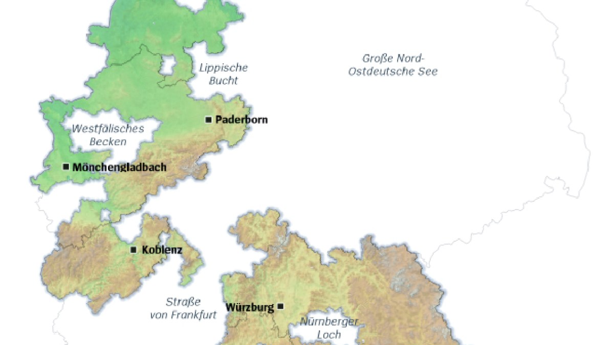 An alliance of the other side of the political spectrum would look like this on the map. This Red-Red-Green Republic would require the SPD to work together not just with B90/Die Grüne (a left-green alliance) but also with Die Linke (the Left Party), a formation further to the left of the SPD. However, this coalition does not command a parliamentary majority either, limited as it is to a small number of urban islands throughout Germany: Kiel, Bremen, Göttingen, Dortmund, Aachen, Saarbrücken, Freiburg, and last (but not least) Berlin.