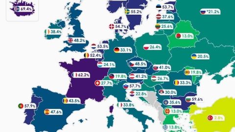 Figures remain in the high forties in the Czech Republic (48.5%), the UK (48.2%), Finland (47.7%), and Spain (47.6%), and in the low forties in Austria (41.2%) and Slovakia (41.0%).