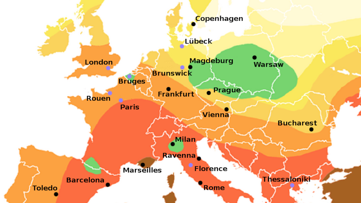Why? First off, the map is slightly misleading. Green does not mean ‘safe’, just ‘less deadly’. Milan, for example, only lost about 15% of its population. Horrific by today’s standards, but a mere trifle compared to the almost wholesale extinction of Italy’s other cities. In Poland and the other ‘green’ areas too, people did die of the Plague, albeit in much lower numbers than elsewhere.