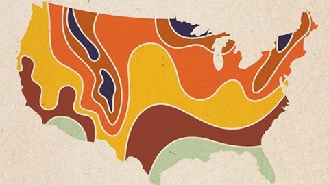 This map, charting the change in the very colors of fall foliage, is reminiscent of the Japanese tradition to chart the “spring offensive” of the cherry blossoms (see #371). It’s taken here from Roadtrippers, which offers tips for foliage tourism across the country.
