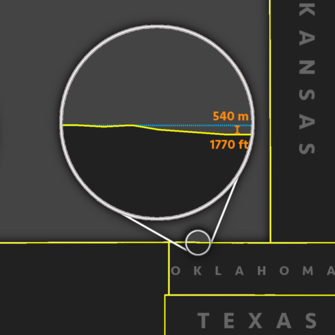 Don’t blame the terrain: appropriately for a place so close to the Oklahoma Panhandle, it’s as flat as a pancake. Perhaps the surveyors were confused by the very featurelessness of the place.