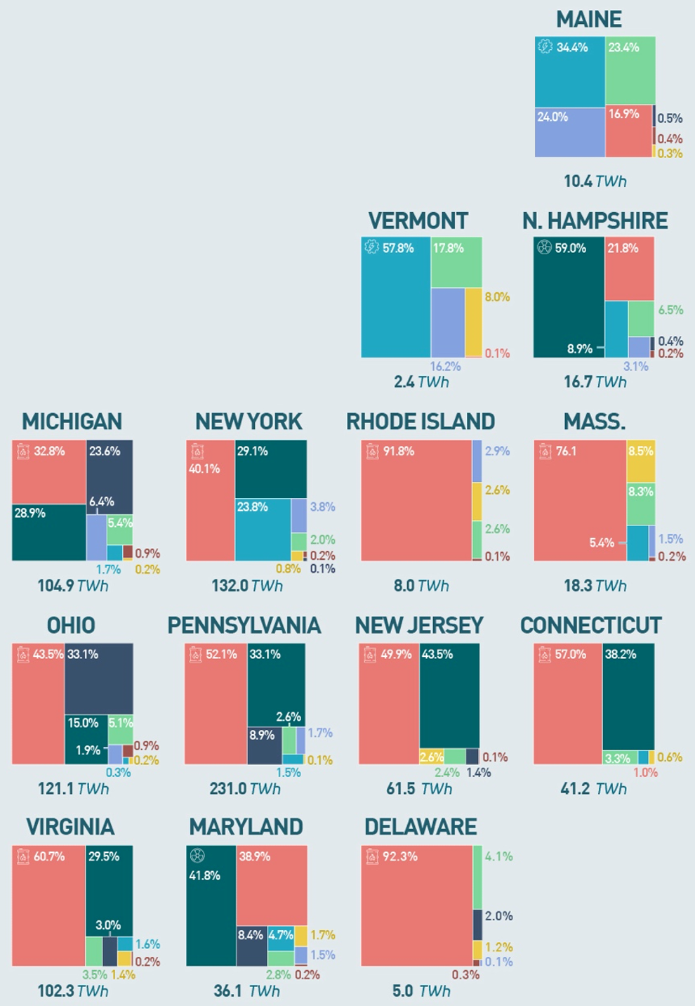 - Pennsylvania (6 TWh)