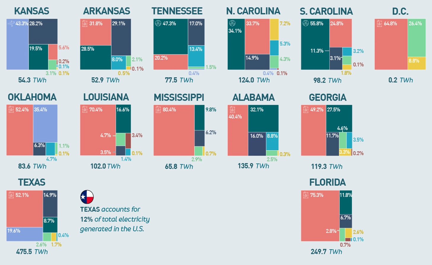 - Alabama (12 TWh)