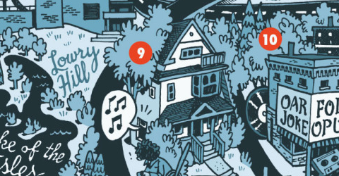 Dead or not, rock deserves great maps like these (and so does Minneapolis). Find it in its entirety here on the Tumblr page of its creator, the artist Kevin Cannon (check out the rest of his page for more great maps). The “lyrics” to the map were provided by Pat Ganley, and were mostly based on All Over But the Shouting, Jim Walsh’s book about The Replacements.