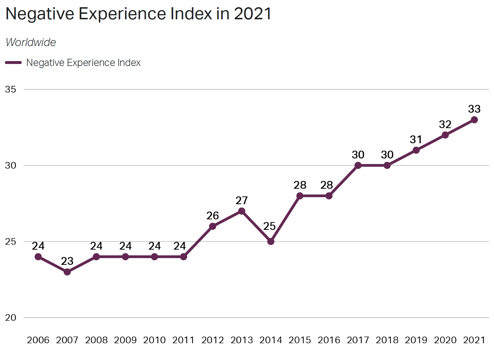These results officially made 2021 the most stressful year on record. Still, the global stress level only went up by one point; the previous year saw a five-point increase.