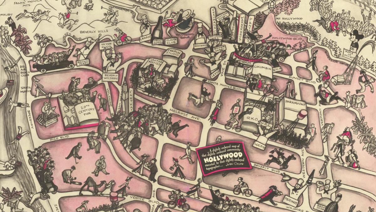 A ‘cockeyed’ view of Golden-Age Hollywood.Credit: Public domain, via David Rumsey Map Collection.