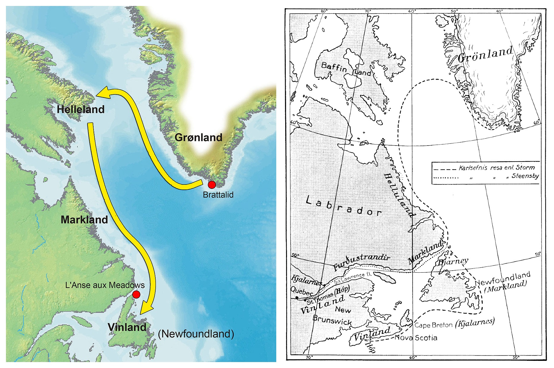Gudrid then settles in Greenland (#3) and eventually marries Thorstein Erikson, brother of Leif and son of Erik. Leif has just returned from a strange new land he discovered across the ocean, and according to one saga, Gudrid joins Thorstein on an unsuccessful trip over to the other side (#4).