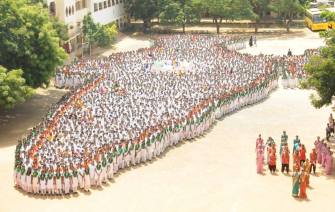Students from Dayanand Anglo Vedic Public School in Airoli (Mumbai) set a record in 2008: They made the biggest Living Map of India so far, with 870 students and 80 teachers, measuring 52 by 37 meters.