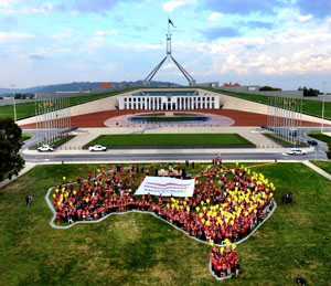 Moving just a bit farther south, here is a Living Map of Australia, the culmination of a student-driven Roadtrip to End Poverty, back in 2013. If Living Maps seem particularly prevalent in the area between the Hindu Kush and the Tasman Sea, that doesn’t mean other parts of the world don’t partake in the curious practice.
