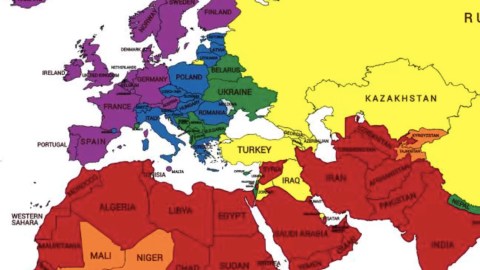 - In Europe, Russia, Turkey and the three Caucasian countries (Georgia, Armenia and Azerbaijan) are in the ‘yellow’ camp.