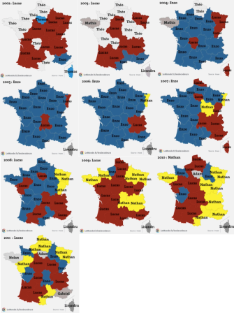 Many thanks to Milan Prabhu for sharing these maps on Facebook. See an animated version here. Source: Les Décodeurs, an online behind-the-news section of Le Monde, with an excellent data visualisation segment.