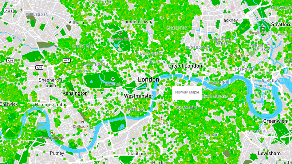 For its part, TreeTalk describes more than 600 species, but it is far from complete. It provides information on just 700,000 specimens – not even 10 percent of Greater London’s overall total. That’s because some of London’s 33 boroughs have not yet or not completely provided data on the trees in their area.