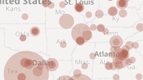 The map was published by The Boston Globe, and is based on data collated by the Mass Shooting Tracker website. MST defines a “mass shooting” as an incident in which at least four people are shot. By that definition, the U.S. has experienced 353 mass shootings this year, resulting in 462 fatalities and 1,312 people injured (2).