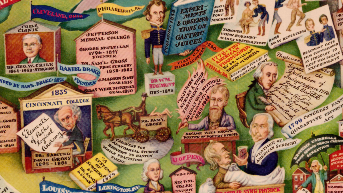 In the manner of a medieval miniature, it illuminates the topography of America with simplified, symbolic representations of the persons, institutions and events that have shaped medical history. That makes for some interesting discoveries.