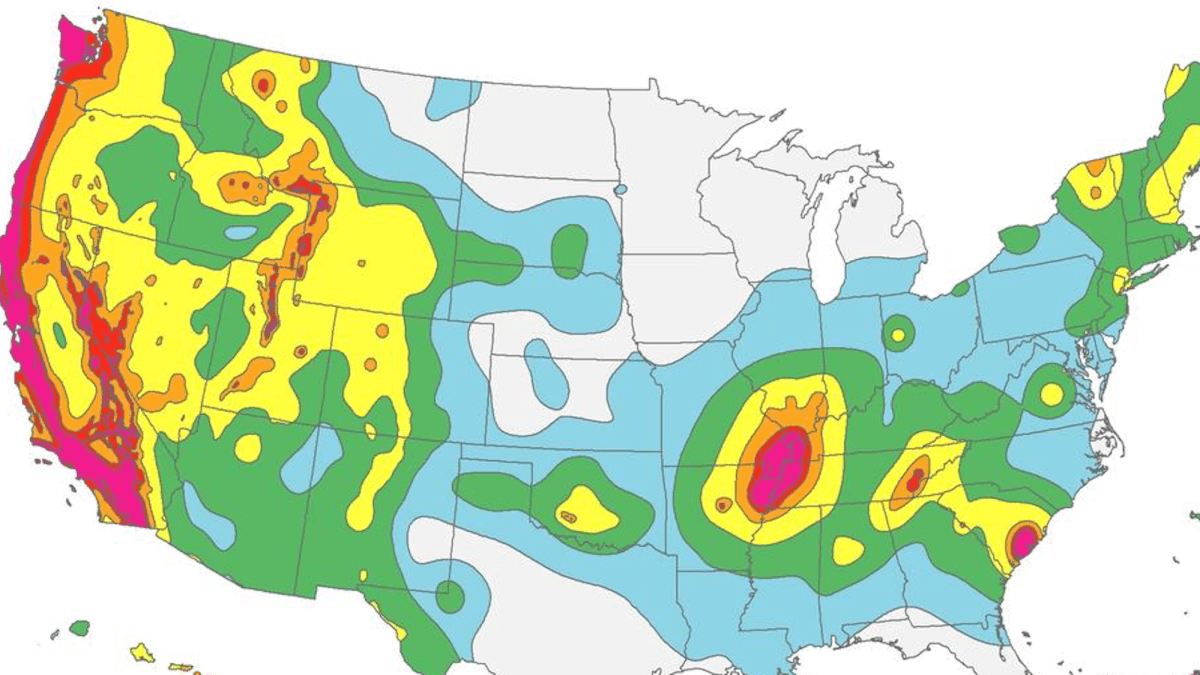 The USGS defines earthquake hazard as the probability of ground motion over 50 years. That probability is determined by a region’s geology and earthquake history.