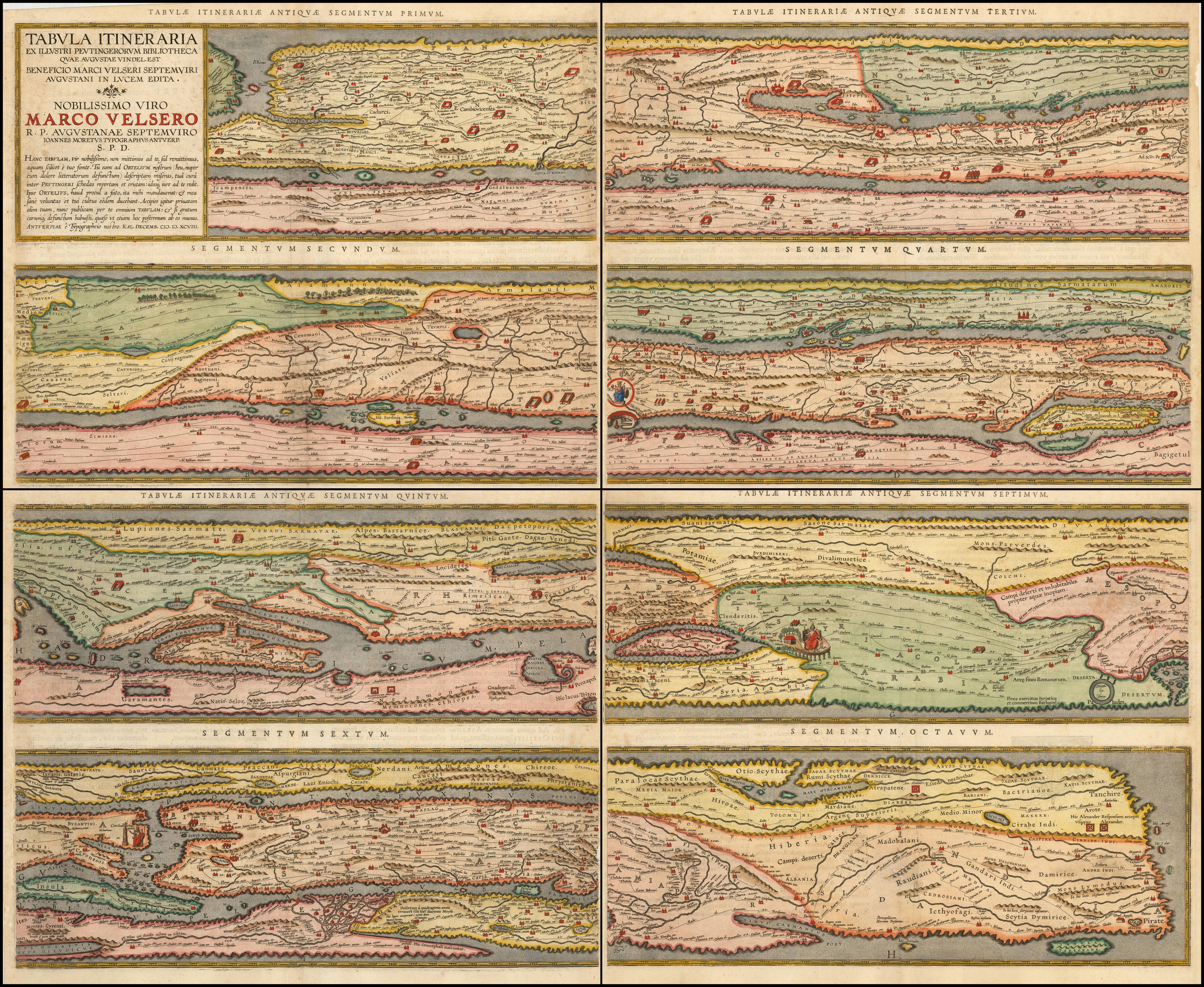 OmnesViae leans heavily on the Tabula Peutingeriana, the closest thing we have to a genuine itinerarium (“road map”) of the Roman Empire. Ancient Rome certainly had maps, but none from that time survive. The Peutinger Map, a 13th-century parchment scroll, is a copy of a much older map, which is only two “possibles” away from the Steward of the Roads himself: It may date from the 4th or 5th century, and that version may be a copy of a map prepared for Augustus around year 1 AD.