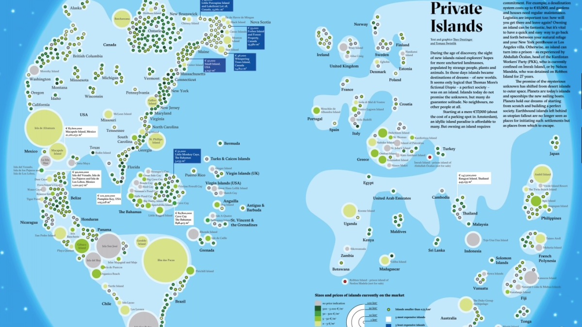 The world’s private islands are unevenly distributed. Africa and the former communist bloc are underrepresented on this map