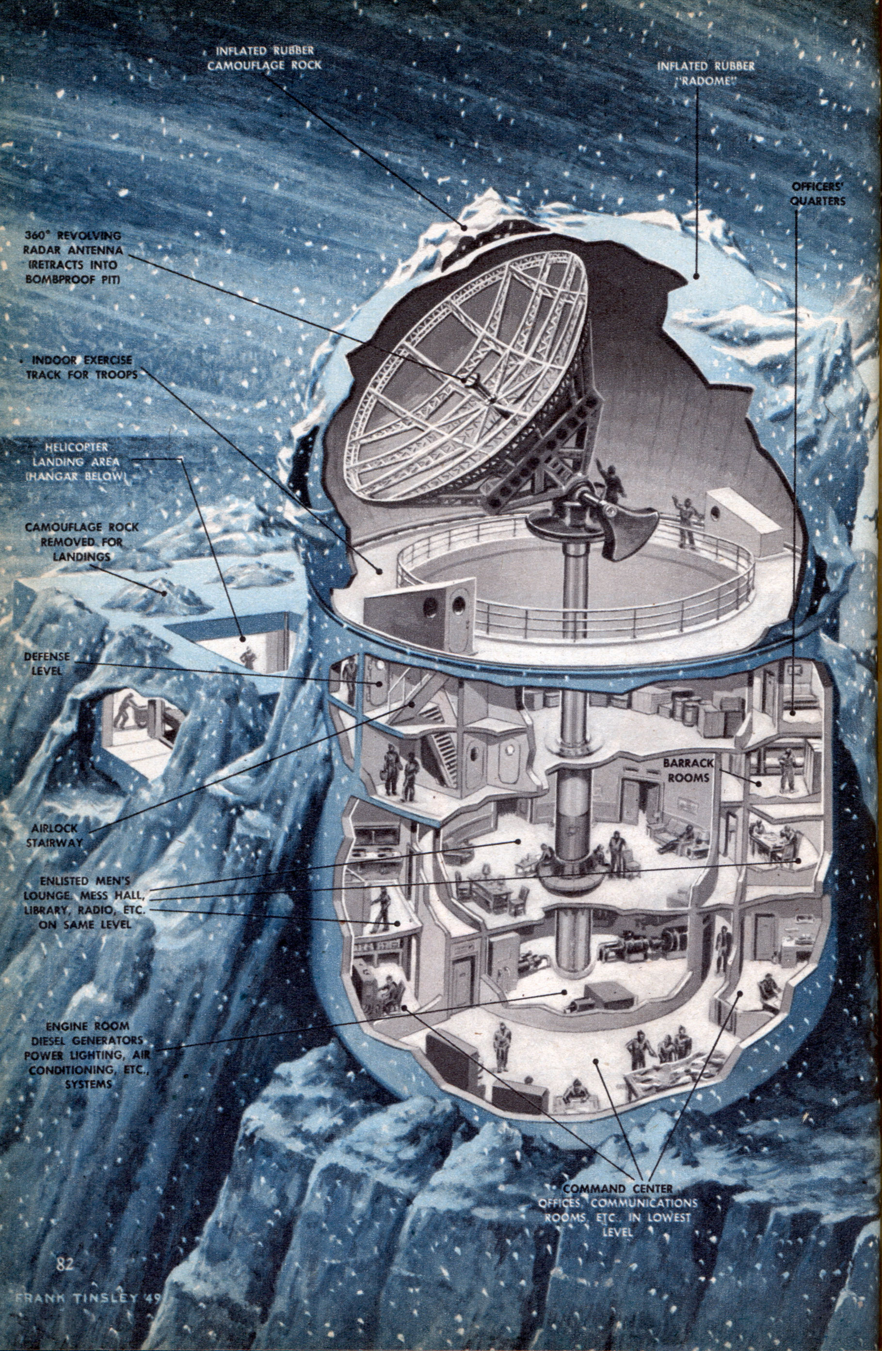 “Miles apart in practically impassable wilderness, each must be a well-hidden, self-contained fortress, capable of guarding its precious equipment securely against any sneak attack. And sudden assault is just as sure as death and taxes. For if war comes again, the blinding of an enemy’s eyes will be the first step before wholesale atomic destruction!”