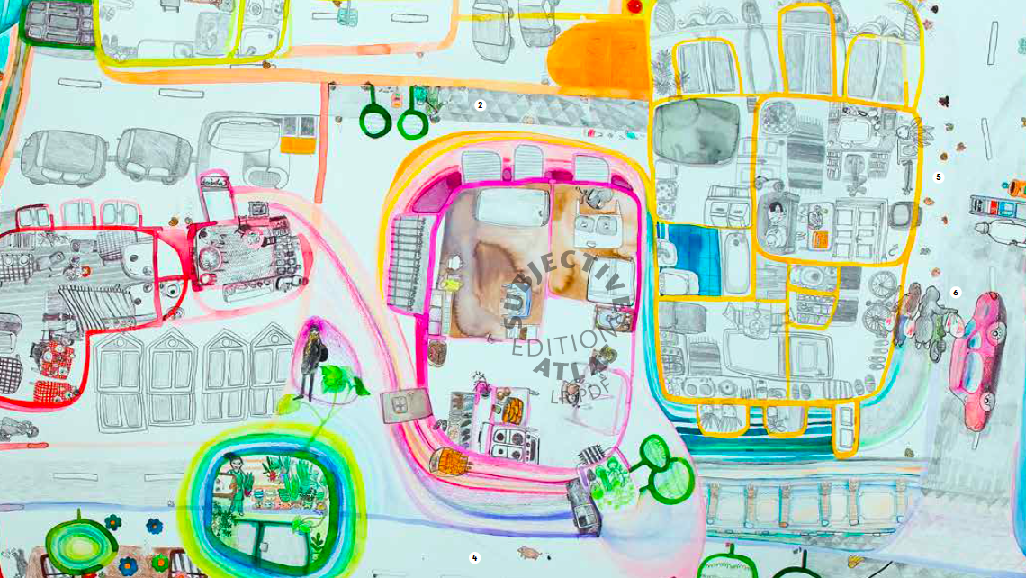 Called “Subjective Atlases,” they don’t present a top-down picture, like most atlases do, but a bottom-up one: a mosaic made by people who actually live there, each offering an individual, original, and genuine take on what that’s like. What you get is a fuzzy, messy portrait that somehow feels more life-like than any neat collection of straight-lined maps could.