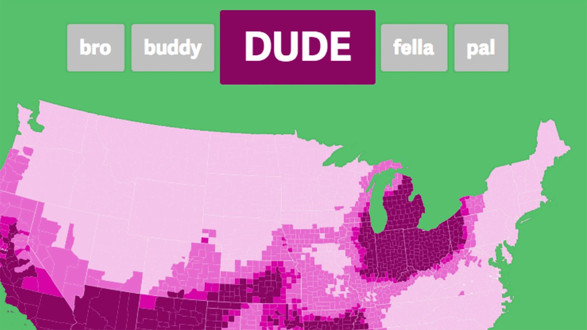 Dude may be just one of many options the English language has for men to refer to their male BFFs. These maps show that it is by far the most widespread of five such colloquial vocatives examined by Quartz magazine. However, its fight for the hearts and minds of American guys – hey, there’s another one – is not over. In certain parts of the country, bros, buddies, pals and fellas are firmly standing their ground.