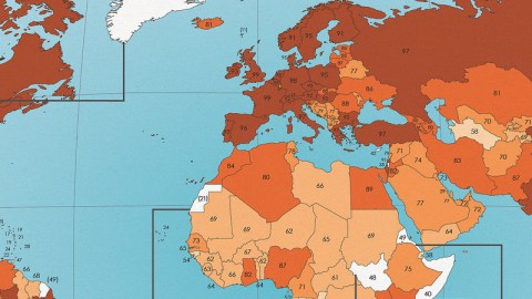 Jordan (82) is doing well in a region stuck in the 70s, except war-torn Yemen (64), outsider Israel (91) and special case Palestine (35) – yet another data blind spot, albeit a tiny one.