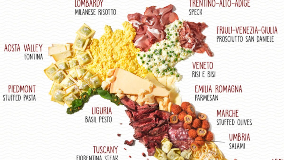 Here’s a map that gives an overview of Italy’s culinary diversity, and a chance to re-acquaint yourself with the country’s geography.