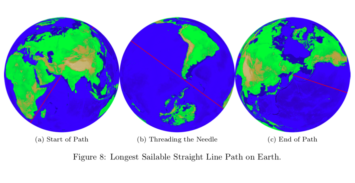 The researchers formulate a few theoretical caveats to their result, and one practical one: “The problem was approached as a purely mathematical exercise. The authors do not recommend sailing or driving along the found paths”.