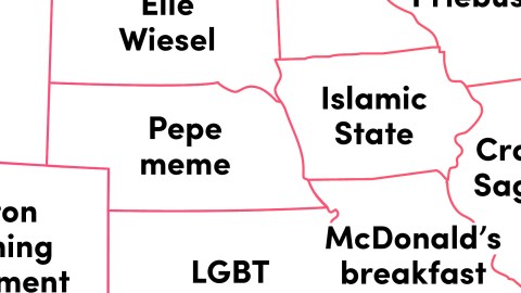 Foreign news – i.e. subjects covering the 95% of the world that is not American – made it to the top only in Oregon (Syria) and Iowa (Islamic State). The Panama Papers, which revealed money stashed away in foreign accounts, were both an American and a global phenomenon – and the top search in New York state.