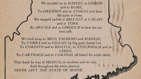 The poem on this postcard lists the many Maine localities named after foreign countries and cities.