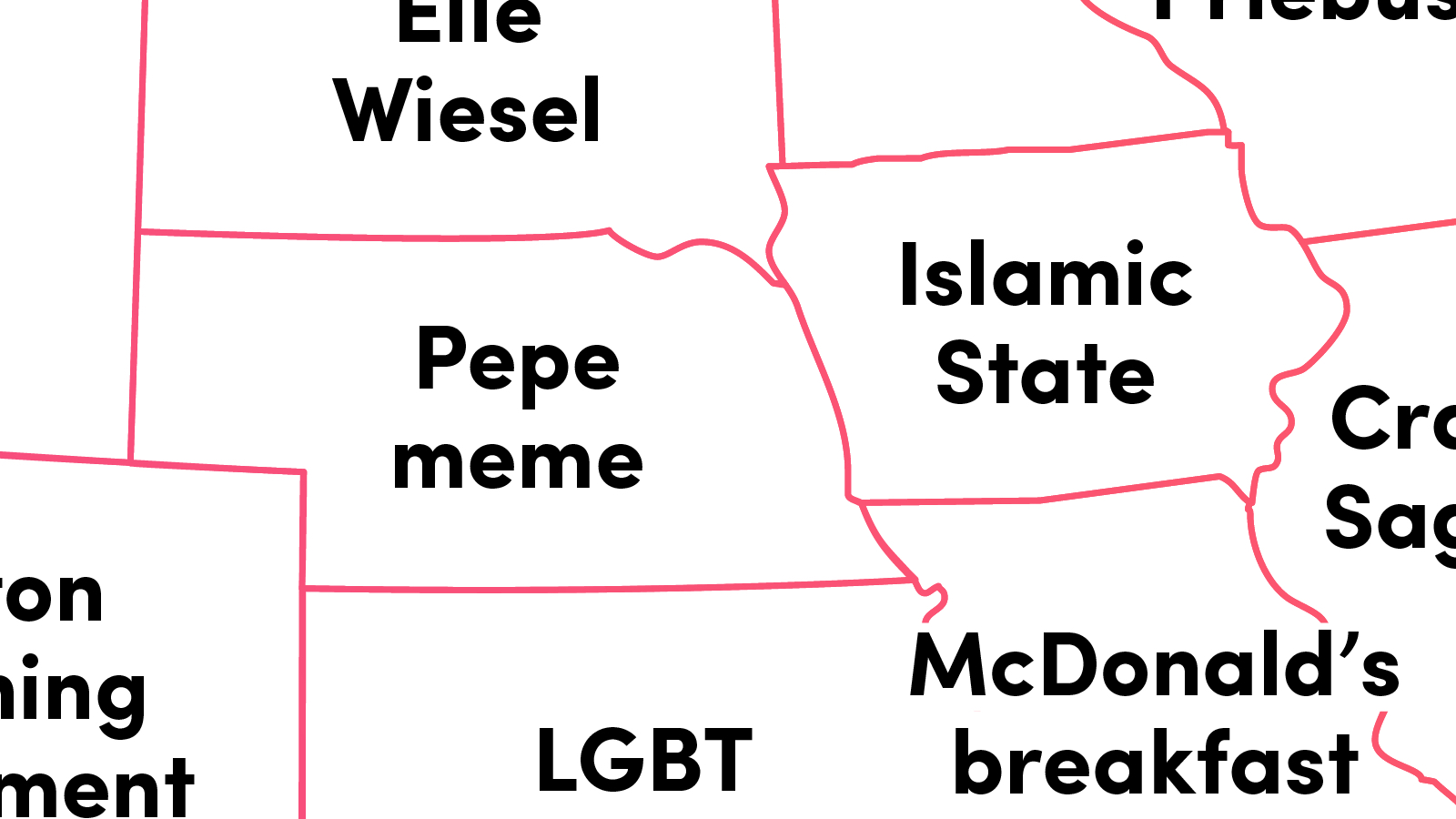 Showing the two sides each as separate island nations captures the sense of alienation and distance between both. The existence of the other is negated, submerged, reduced to lapping waves. On the Trumpistan map, pro-Hillary counties coalesce into nothing more than bodies of water: Las Vegas Harbor, the Santa Fe Sea, Des Moines Pond, the New York Narrows and the D.C. Delta. A similar nomenclature on the Clintonesia map shows the Wyoming Shallows, the High Plains Sea and the Great Bays (bye bye, Michigan). Not so much rival territory as another realm. Democratic islands in a conservative sea include Albuquerque Island, the Montana Archipelago and Isla Grande, in the south of Texas.