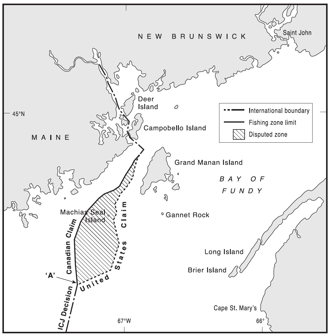 Most images taken from the article “Canada’s Unresolved Maritime Boundaries” by David H. Gray, published in the Autumn 1997 edition of the IBRU Boundary and Security Bulletin, a publication by the International Boundaries Research Unit (IBRU) at Durham University (UK).