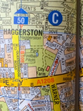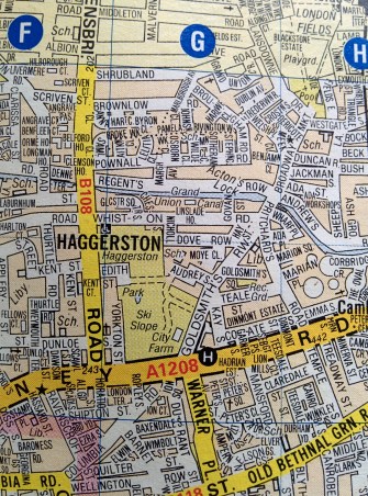 Haggerston, an area in the Borough of Hackney, northeast London, is notable for few things. For its Hackney City Farm. For its Haggerston School, designed by Ernö Goldfinger. For its long association with clowning [1]. And for famous residents such as comet-namegiver Edmund Halley and psychogeographer Iain Sinclair.